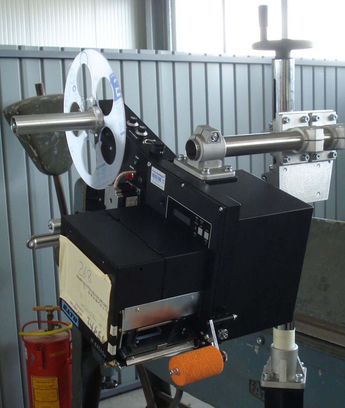 Optional: Anbausatz, Befestigungsteile, Andruckrollen & Bürsten, Pneumatiksatz zum Andrücken auf Produkt, Höhen- Seitenverstellung, Stativ, Transportbänder...